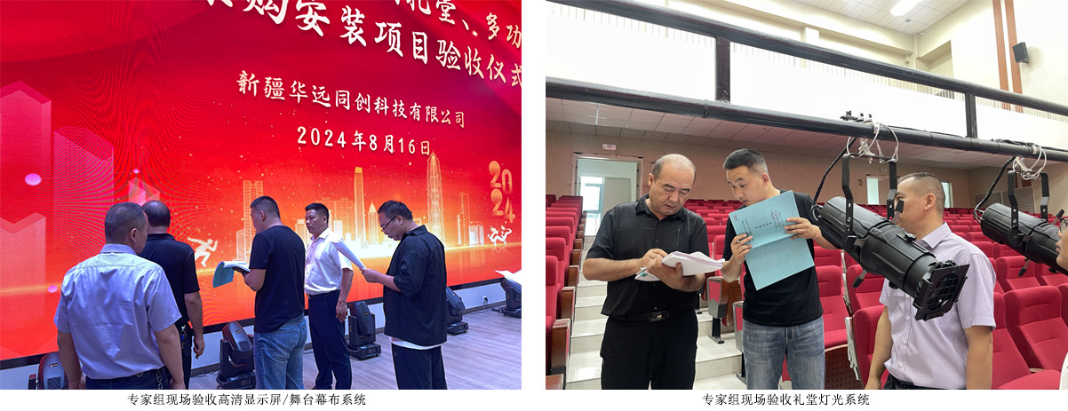 2024年8月16日,由新疆華遠同創(chuàng)科技有限公司承建的巴州衛(wèi)校新校區(qū)一期禮堂、3間多功能廳設備采購安裝項目,經過驗收流程,通過了竣工驗收!本次驗收專家組由新疆巴音郭楞蒙古自治州衛(wèi)生學校、新疆科技學院等單位的領導及專家共同組成。驗收組通過聽取匯報、現場察看以及逐一核對項目資料等方式,在充分討論和實地審核的基礎上,認為我方交付的項目的質量、舞臺機械升降、視聽效果等各個系統(tǒng)達到了設計標準和要求,符合使用需求,一致同意通過驗收!