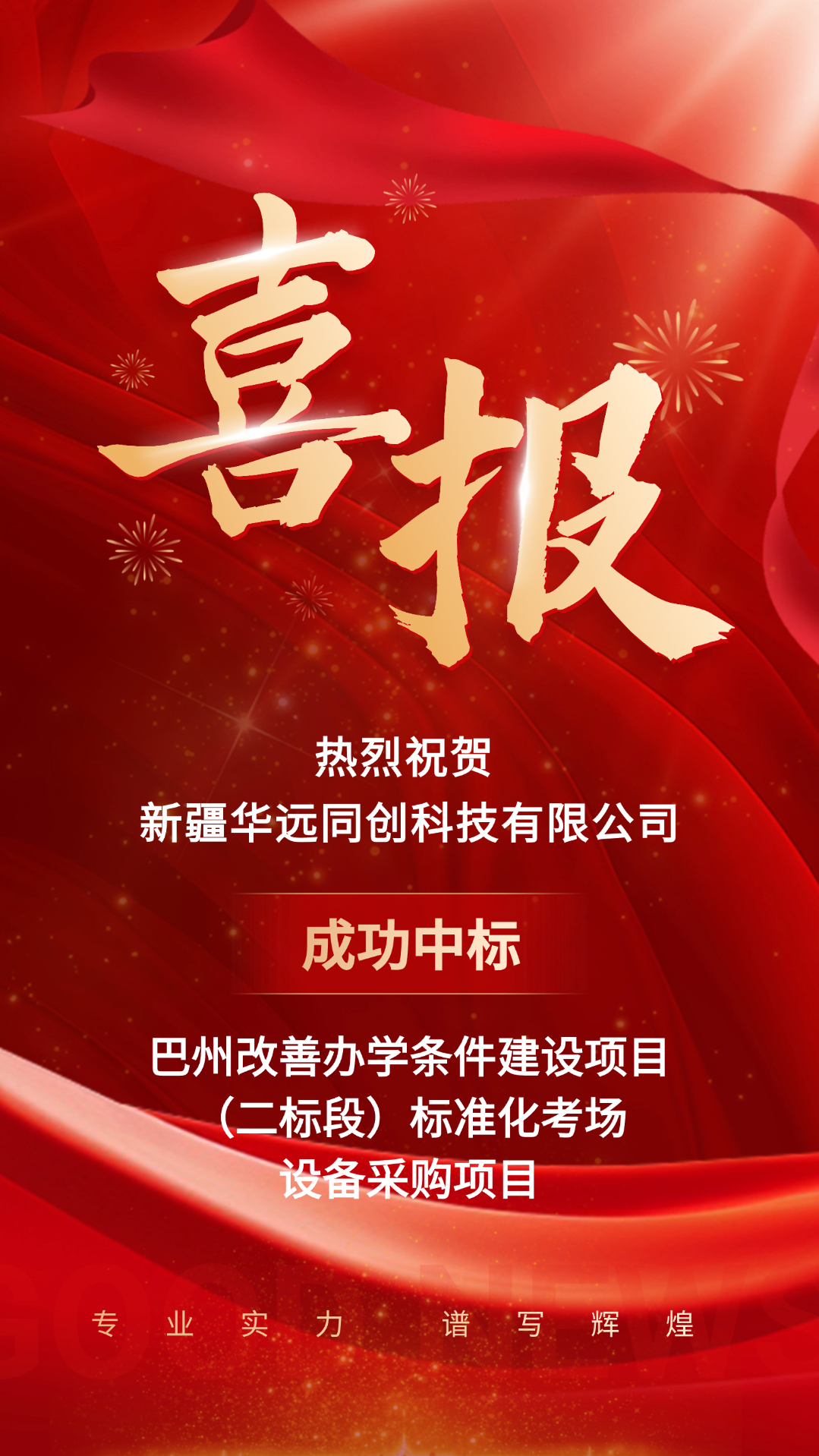 金秋時節(jié)收獲多,中標喜訊乘“豐”來!近日,在全體員工的共同努力下,新疆華遠同創(chuàng)科技有限公司成功中標巴州改善辦學(xué)條件建設(shè)項目(二標段)標準化考場設(shè)備采購項目。